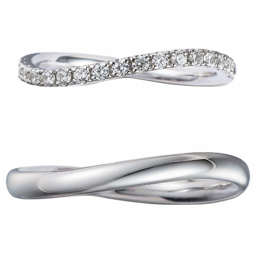 ダイヤモンドが途切れることなく続く、永遠を意味するエタニティリングタイプを、無限を意味するインフィニティマークに見立てたウェーブラインで仕上げ、永遠の愛を表現しました。リング幅は細身なので沢山ダイヤモンドがあしらわれていても華美になり過ぎず、繊細で上品な輝きを楽しめます。結婚の誓いにふさわしい意味が込められた、おすすめの結婚指輪(マリッジリング)。