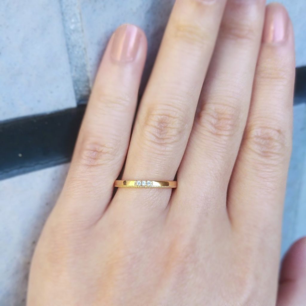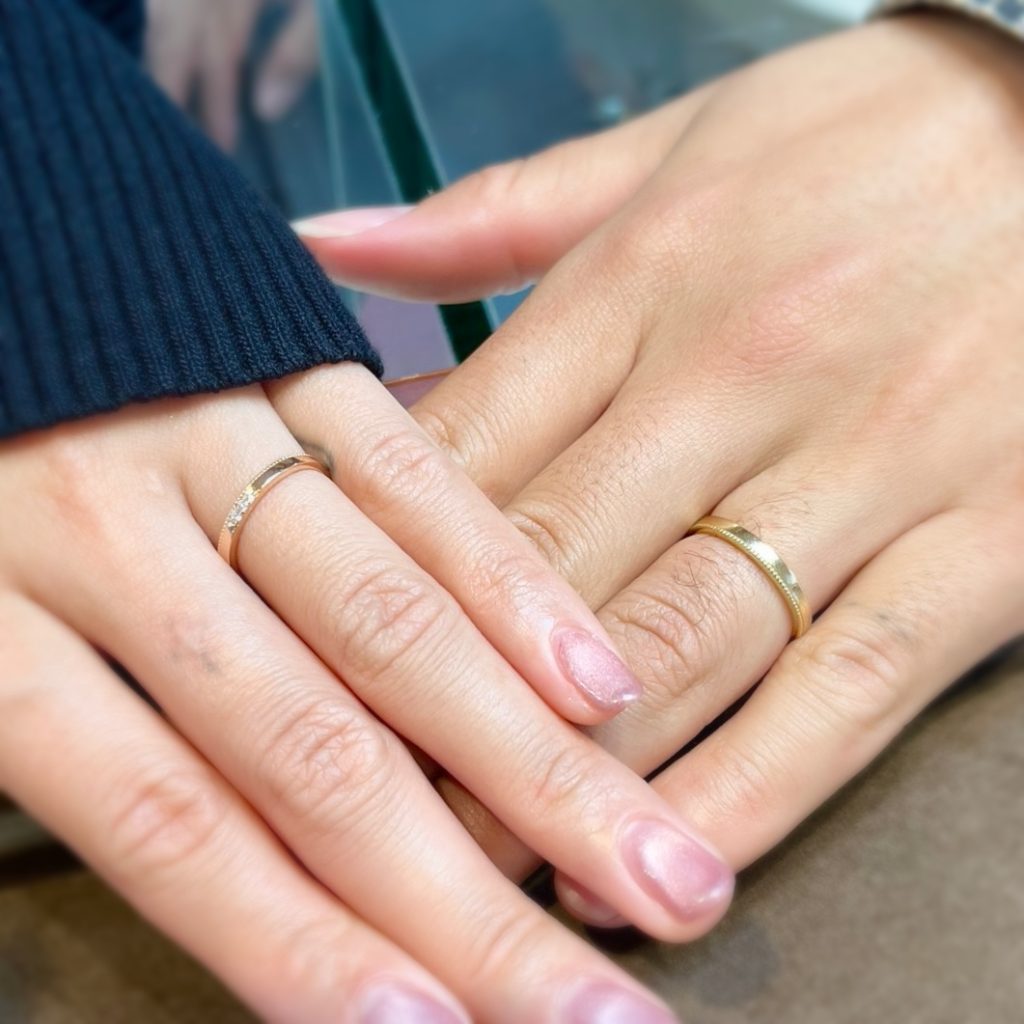 本日は、ゴールドの素材にミル打ちが施された、お客様の素敵な結婚指輪をご紹介いたします!