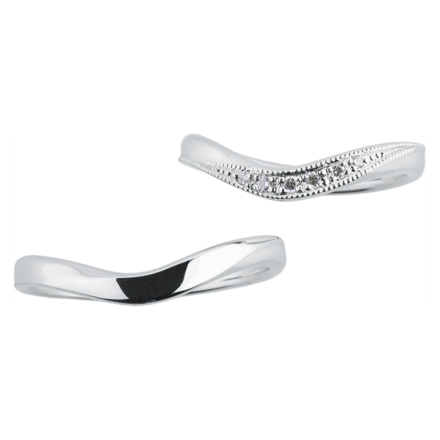 ふたりで創り上げる思い出は、どんな宝石よりも美しい。まるで星のように輝くミル打ち加工と、流れるようなラインは着けるたびにうっとりするような美しさです。
