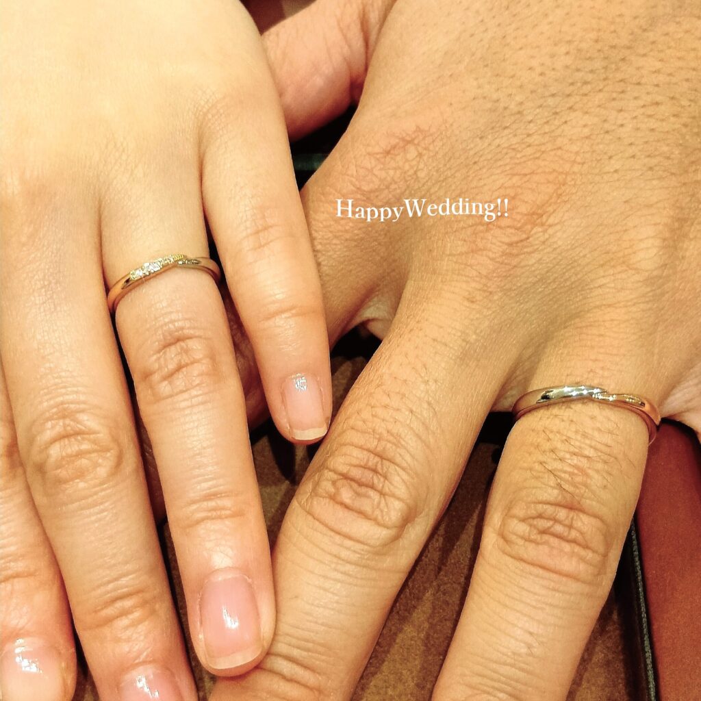 ゆるやかな曲線に、ピンクゴールドの色合いも相まって、とても優しい雰囲気の結婚指輪に仕上がりました❣