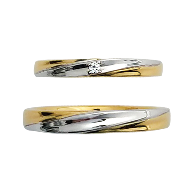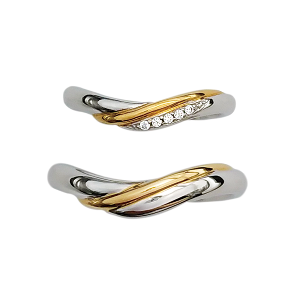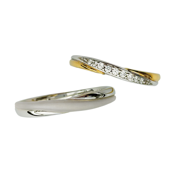 プラチナとゴールドのラインが美しく絡み合う、コンビネーションマリッジリング(結婚指輪)。強く結ばれたふたりの絆をイメージしたデザインで、日常に彩りをもたらし、指輪を見る度に力が湧いてくるようなリングです。