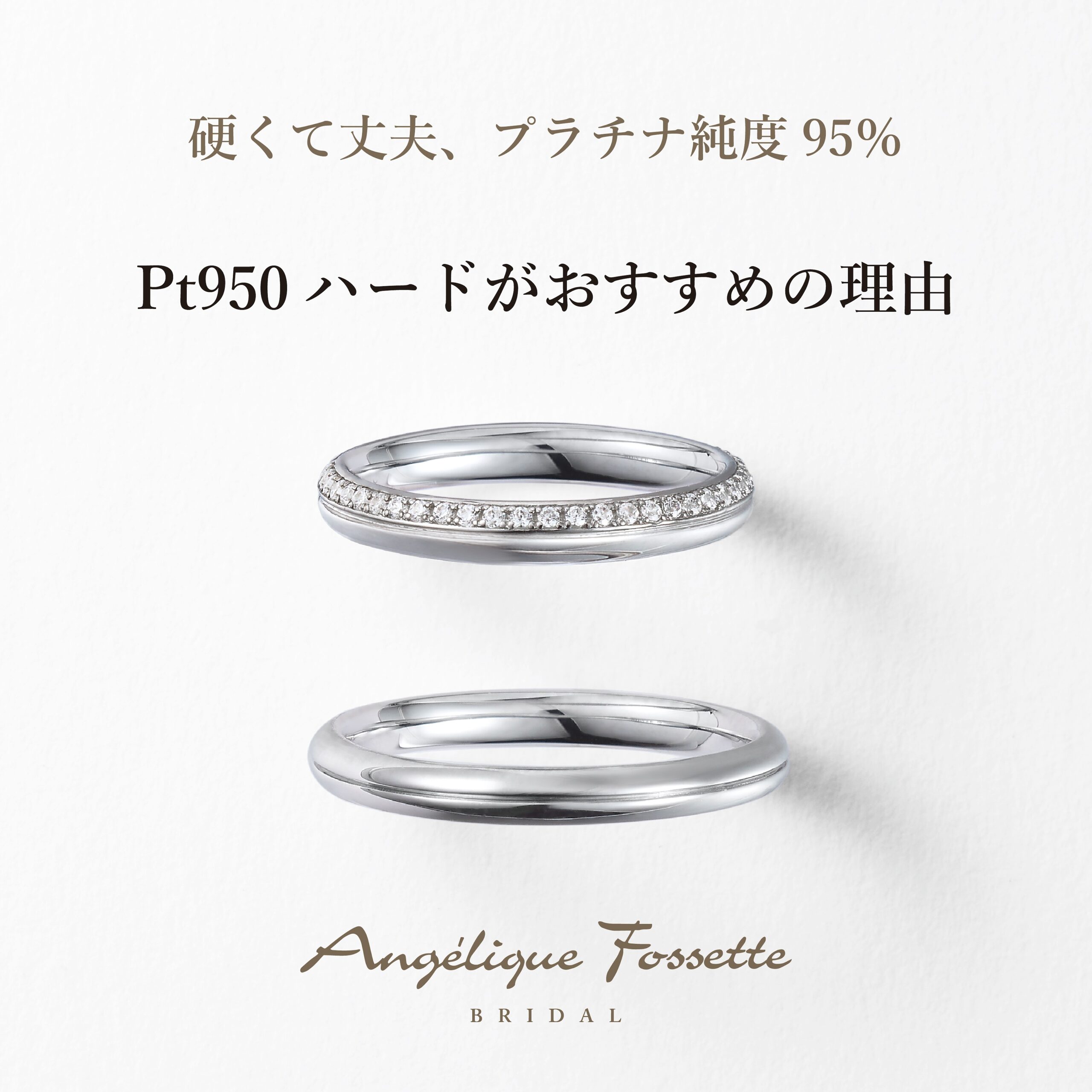 アンジェリックフォセッテは全てのブライダルリング(婚約指輪・結婚指輪)を、このPt950ハードプラチナを使ってお作りします。