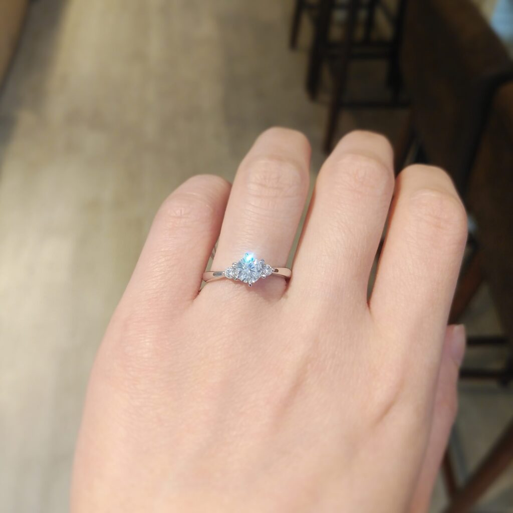 360℃どの角度から見ても美しいダイヤモンドのカットを楽しめる様工夫された3本爪のエンゲージリング(婚約指輪)!案外周りからは指輪を横から見られる事も多いので、横からのシルエットにもこだわりダイヤモンドのセッティングを行っている。究極のシンプルデザインは、ダイヤモンド本来の輝きを存分に楽しめるのが最大の魅力です。