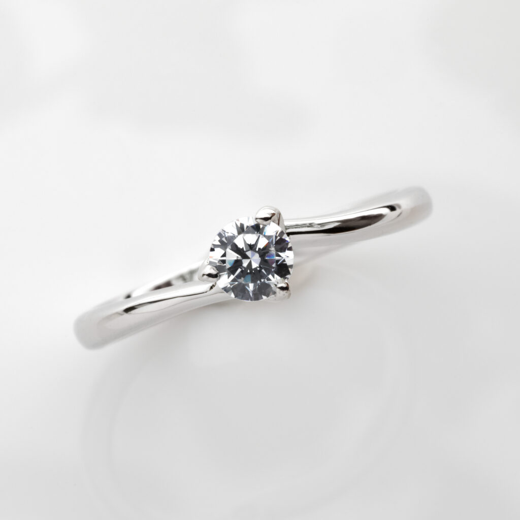 360℃どの角度から見ても美しいダイヤモンドのカットを楽しめる様工夫された3本爪のエンゲージリング(婚約指輪)!案外周りからは指輪を横から見られる事も多いので、横からのシルエットにもこだわりダイヤモンドのセッティングを行っている。究極のシンプルデザインは、ダイヤモンド本来の輝きを存分に楽しめるのが最大の魅力で、細身で繊細なアームはマリッジリング(結婚指輪)との重ね着け相性も抜群。