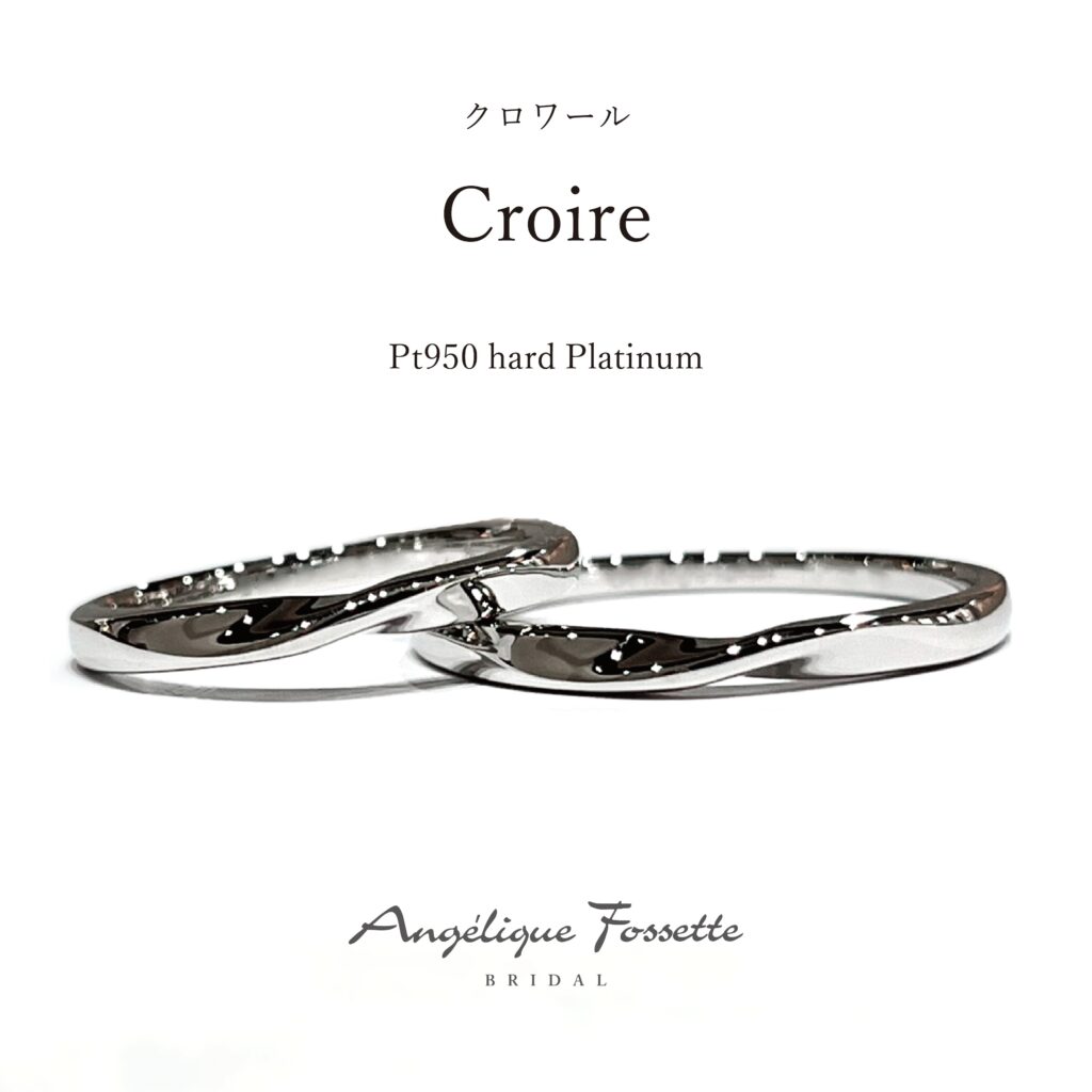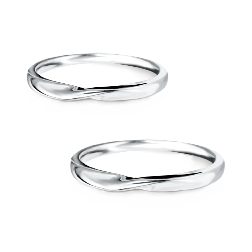 ストレートなデザインの中央にひねりを効かせたスタイリッシュなマリッジリング(結婚指輪)。中央が少し細くなっているので動きも出て、指をすっきり綺麗に見せる効果も。輪の中に結び目をイメージしたひねりをデザインし、固く結ばれた永遠の誓いやお互いを信じ想い合う気持ちを表現している。