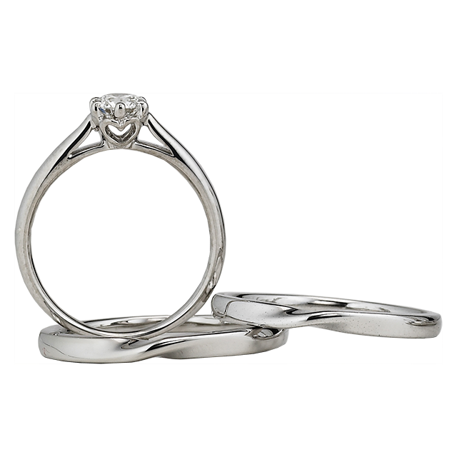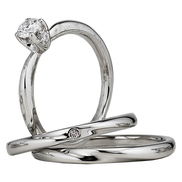 ストレート×王道なシンプルで飽きのこないデザインのリングをお探しの方にぴったり!エンゲージリング(婚約指輪)は、横からのぞくとハートの窓が隠されている遊び心いっぱいのデザイン。一見とてもシンプルではあるが、さり気ないおしゃれさとハートがふたりをそっと見守るようなロマンチックさも兼ね備えている。ひねりのあるマリッジリング(結婚指輪)はプラチナの光沢感を贅沢に楽しめるので、重ねて着けると大人っぽい印象に。細身なので着け心地も良いと男性にも人気。