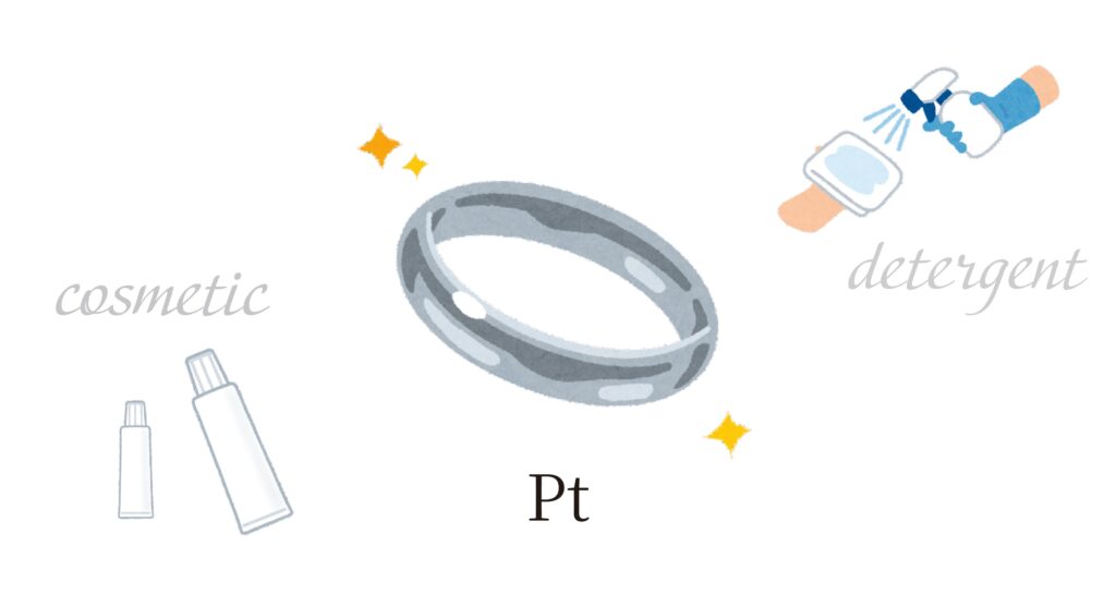 プラチナは酸やアルカリ、汗などに強く、温泉やプールに入っても変色・変質しにくい性質があります。経年による変色もありませんし、化学物質によって変質・変色してしまう事も無いため、長年身につける結婚指輪にふさわしい素材です。