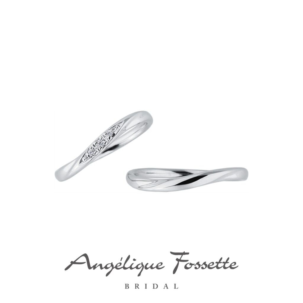 丸みのある曲線で柔らかな雰囲気のあるデザイン。ふたりを包み込む穏やかな時の流れを表現するようなS字ラインのマリッジリング(結婚指輪)。さらに手元の水かきに添って流れるように計算され作られているラインは手元を綺麗に見せてくれる。