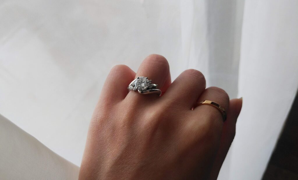 婚約指輪の中心に留まるダイヤモンド。