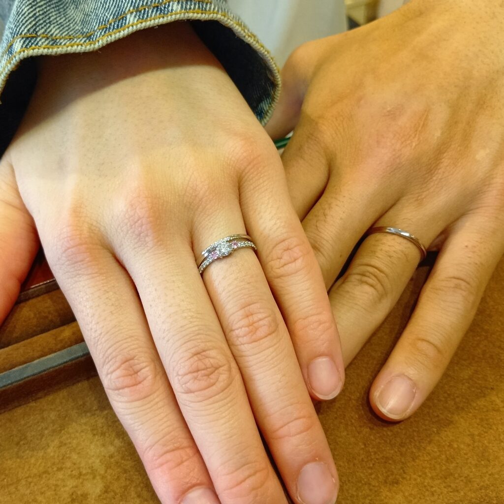 本日は、アンジェリックフォセッテ浜松店にてオーダーいただきました素敵なお客様の婚約指輪・結婚指輪をご紹介いたします!
