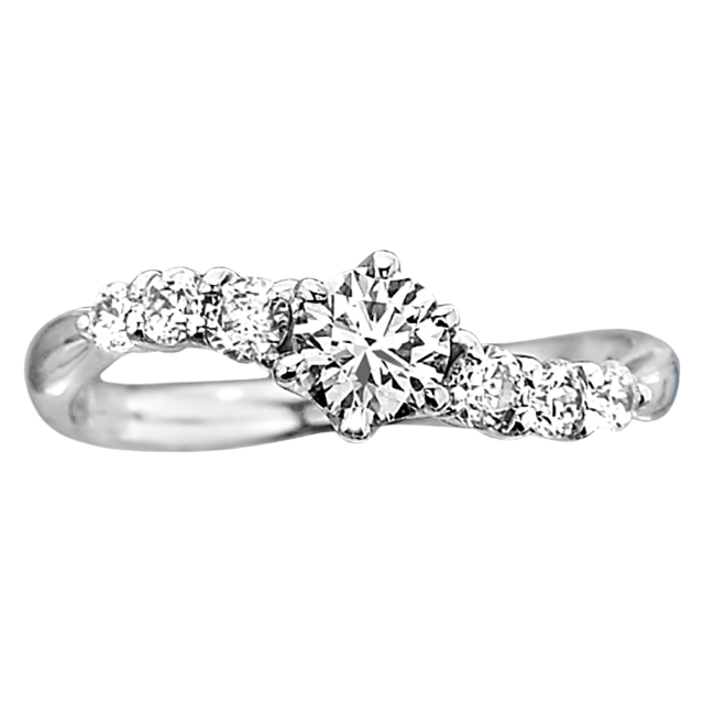 指の上でダイヤモンドが流れるようなS字のラインを描く華やかエンゲージリング(婚約指輪)。エンゲージリング(婚約指輪)に華やかさや豪華さを求める女性におすすめのデザインです。
