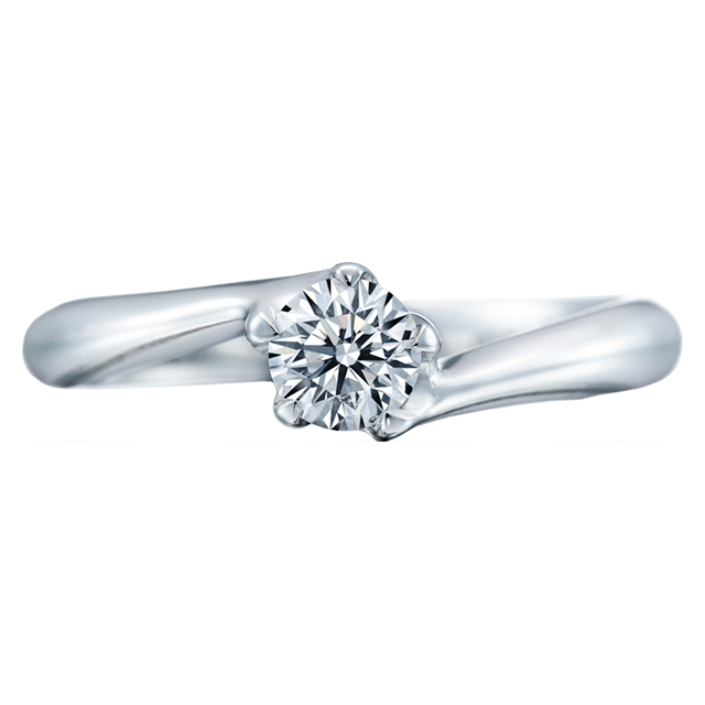 V字タイプのシンプルなソリティアの婚約指輪「プルミエラムール」。V字にすることでメインのダイヤモンドに目が行きやすく、更に指もほっそり見せてくれる相乗効果も。ダイヤモンドを留める台座部分も腰を低く、爪も小さく留めるので引っ掛かりも気にせず普段使いもしやすい点も嬉しいポイント。