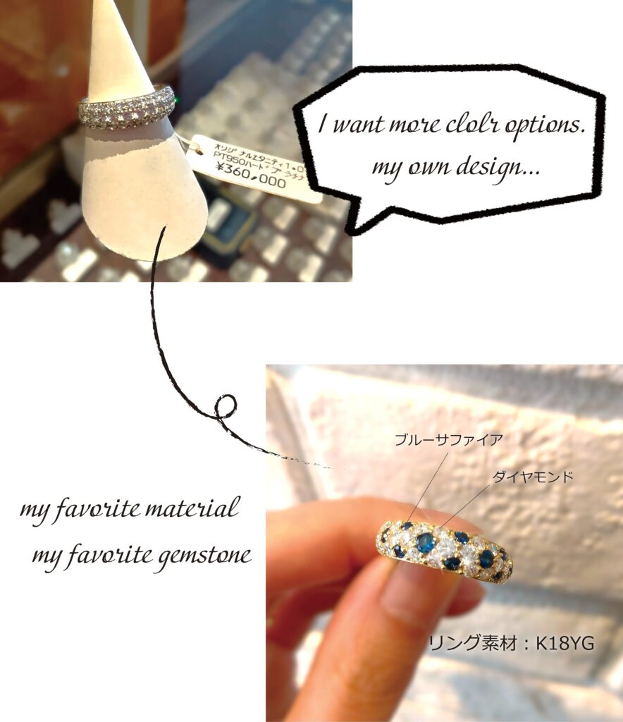 「こんなデザインが欲しいけど何処にあるんだろう?」と、何件も宝石店を探し回るのってけっこう大変な事かと思います。また、「自分好みのオリジナルデザインを作りたいけど、イメージ通りに完成するのか不安。」というお声も聞きます。