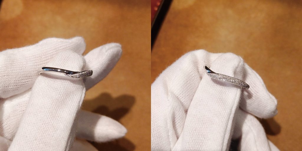 指輪全体に施すとどこから見てもキラキラ感が楽しめたり、一部のみ加工を施すと2つのテクスチャーの違いが楽しめ贅沢な仕上がりになります♪
