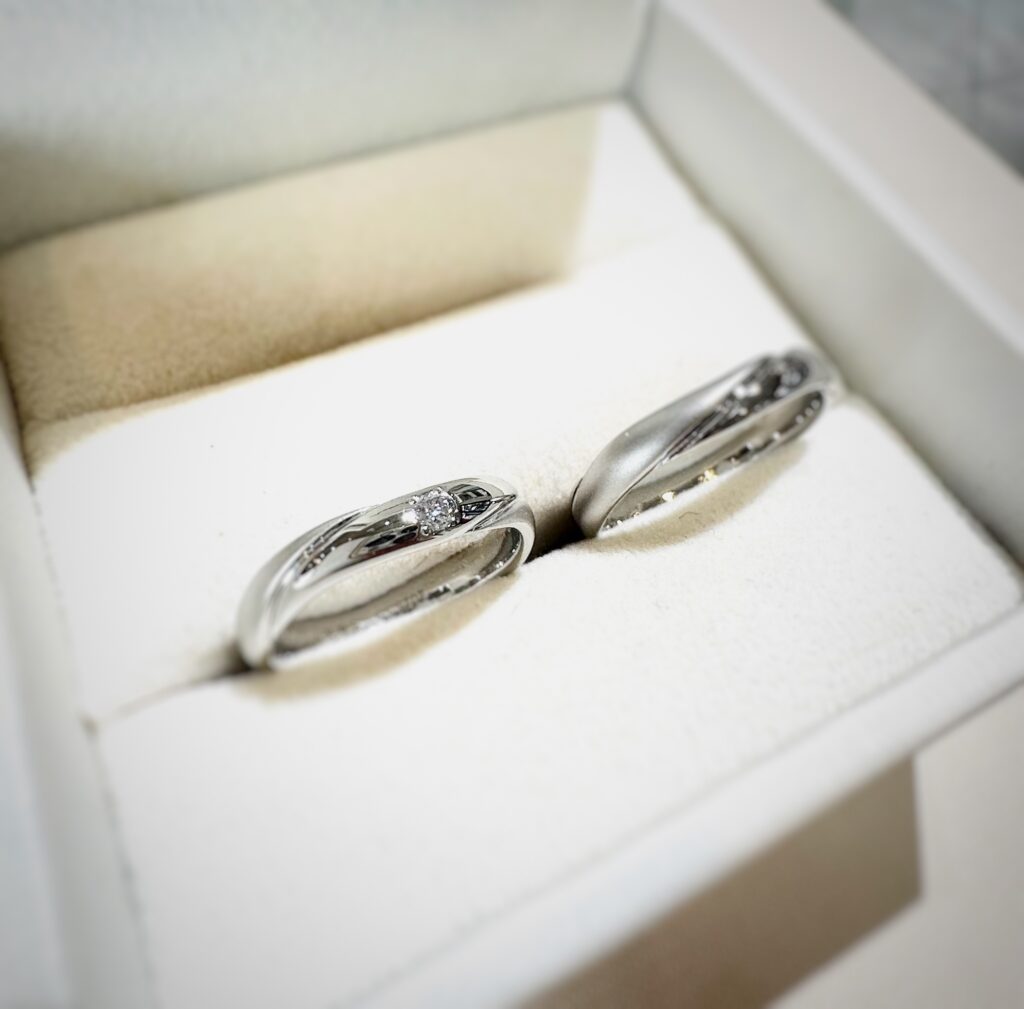 お好きなデザインの指輪に、お好みの位置につや消し加工を無料でオーダーできるのも、アンジェリックの特徴の一つです❣
