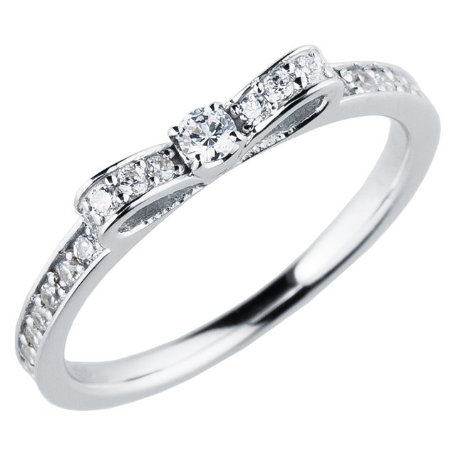キュートで目を引くリボンのデザイン。横から見ると立体感があり、真上から見るとエタニティリングにも見えちゃう♪リボンモチーフのリングには“結びつける”という意味があり、人との結びつきをより強くしてくれるとされている。恋人から贈られると2人の関係がより深まる素敵な指輪!シンプルかつ可愛らしいデザインでもさり気なくリボンもポイントで手元から女性らしさを演出してくれるデザイン。エンゲージリング(婚約指輪)にもマリッジリング(結婚指輪)にも使える優れもの!