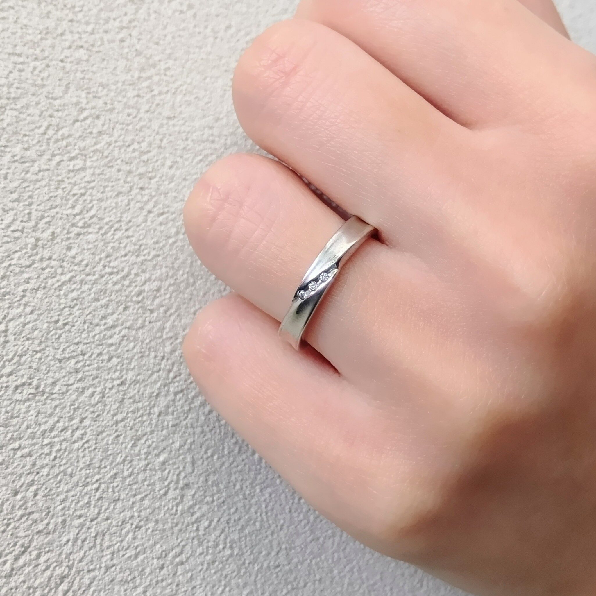 センターにセッティングされたダイヤモンドを、おふたりでそっと包み込む様をイメージしたデザインです。女性と男性、全く同じデザインは珍しいですが、同じ物を身につけたいという仲良しなカップルにオススメです。女性用はホワイトダイヤで華やかに、男性用はブラックダイヤでクールな印象に、普段からファッション感覚で身に着けられるお洒落なマリッジリング(結婚指輪)です。リングの内側を丸く、角のないデザインに仕立ててあるので着け心地も抜群です。