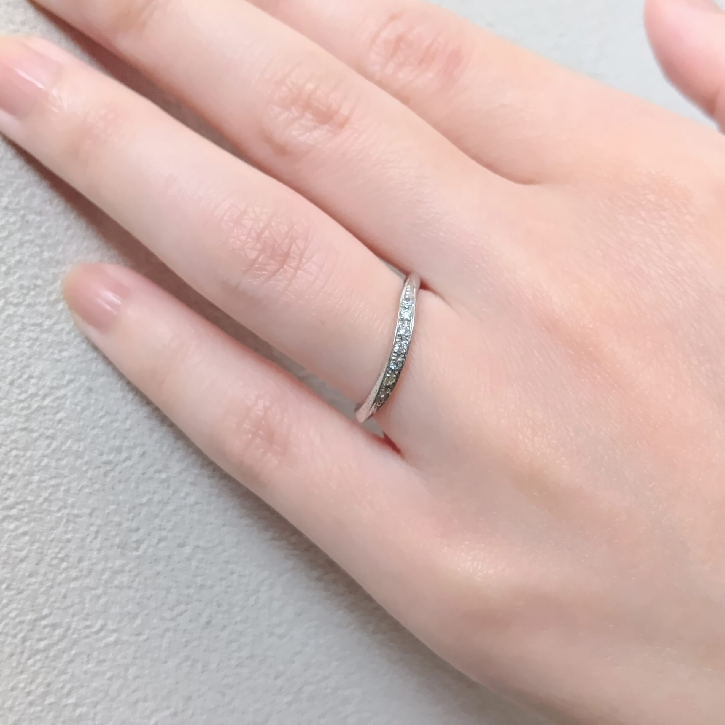 プラチナの光沢感と、ダイヤモンドの輝きと両方を楽しんで頂ける贅沢なリングに仕上げました。男性のリングにはつや消し加工もオススメです!