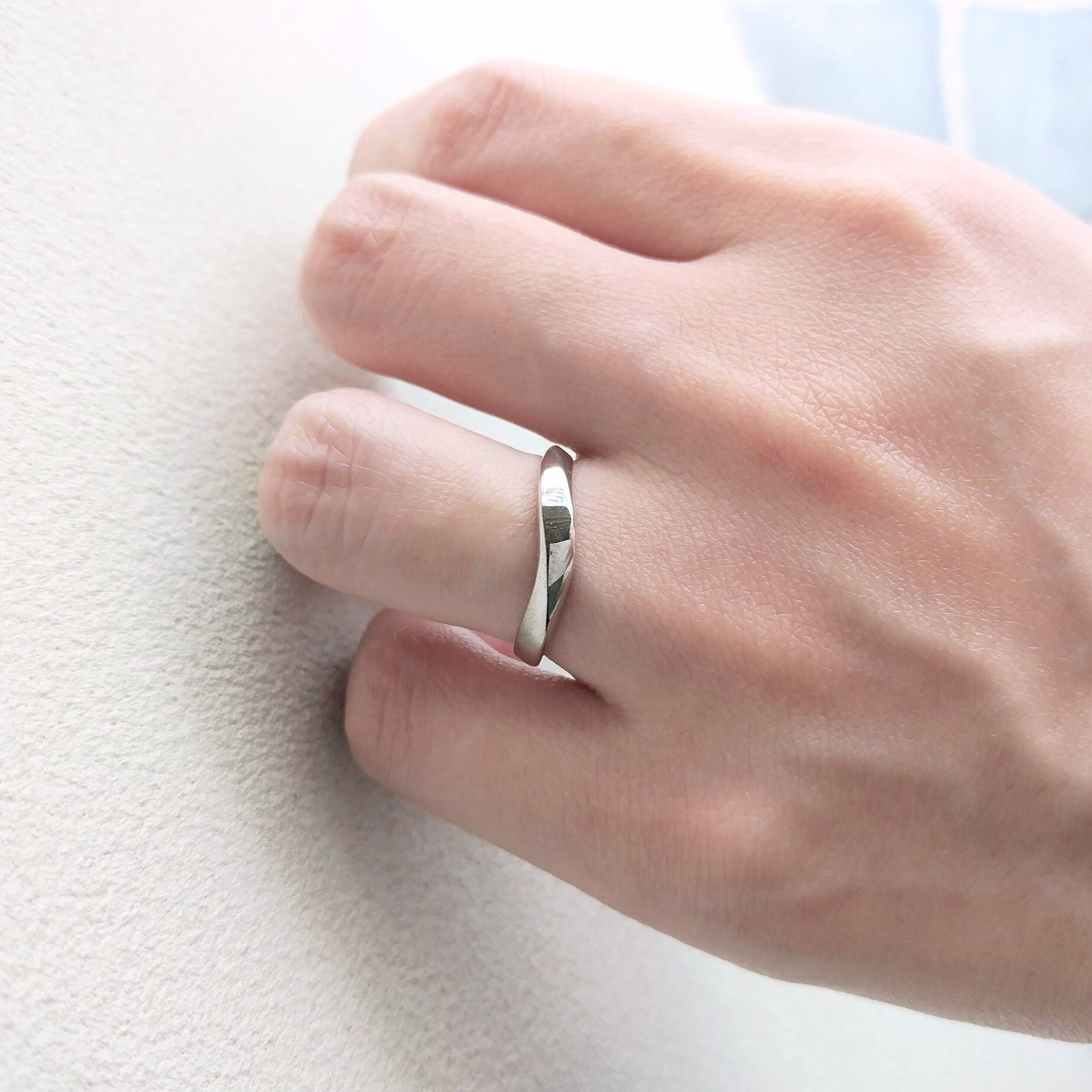 正面にしっかりボリューム感があり、指輪の存在感も感じられるシンプルなマリッジリング(結婚指輪)。手の平側に向かうにつれて幅を細くデザインされているため、物を掴んだり手をついた際の違和感も無く、更には着けた際に丁度中指と小指に当たる部分の厚みを抑えているため、横の指当たりも皆無でストレスフリーな着け心地を実現!いつまでも仲睦まじく幸せでいよう、そんな誓いを約束したおふたりにぴったりのデザイン。