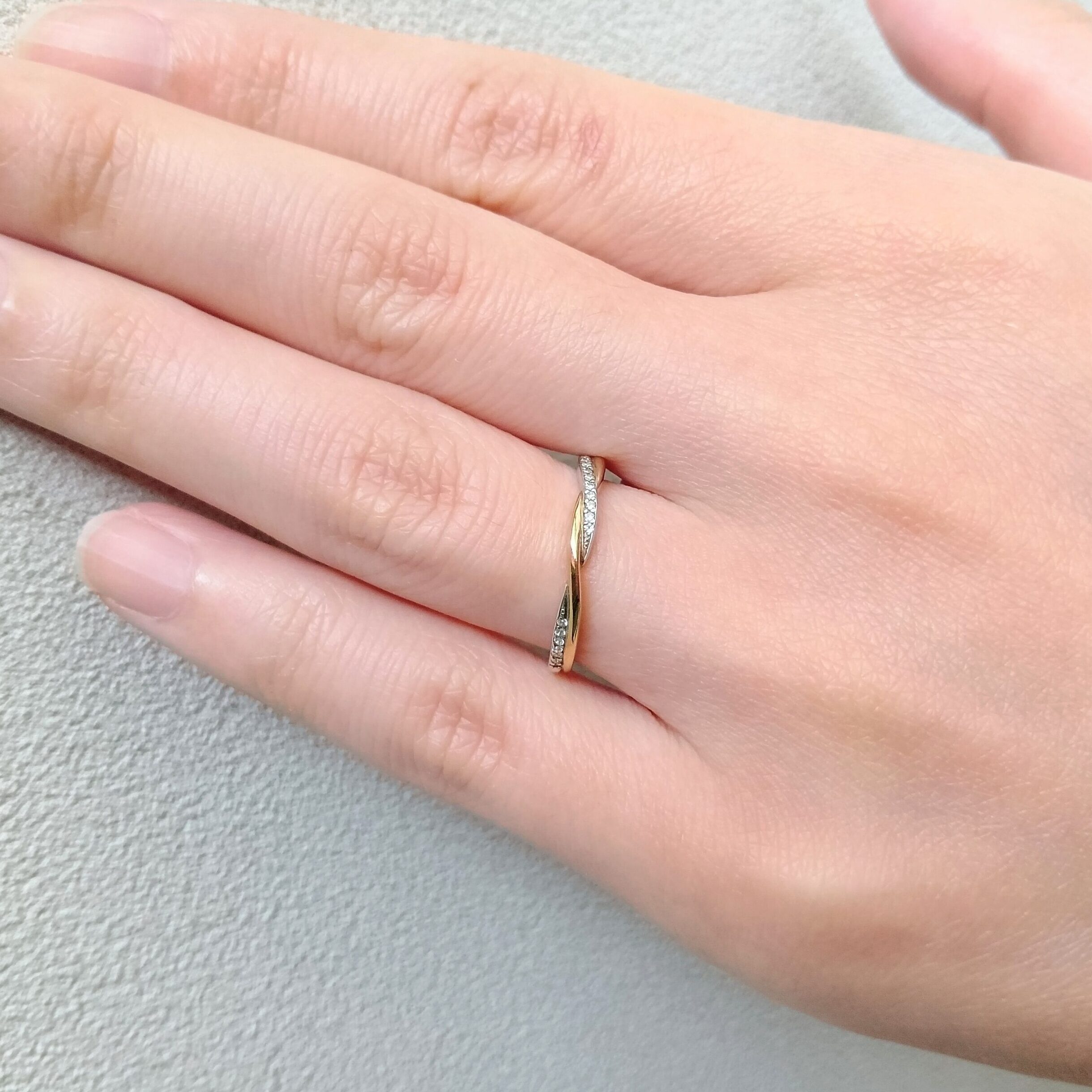 プラチナとゴールドのラインが美しく絡み合う、コンビネーションマリッジリング(結婚指輪)。コンビにする素材は6種類の素材の中から自由に選べる!もちろん、一色での作成も可能なので自分達らしい組み合わせを見つけて。強く結ばれたふたりの絆をイメージしたデザインで、日常に彩りをもたらし、指輪を見る度に力が湧いてくるようなリング。
