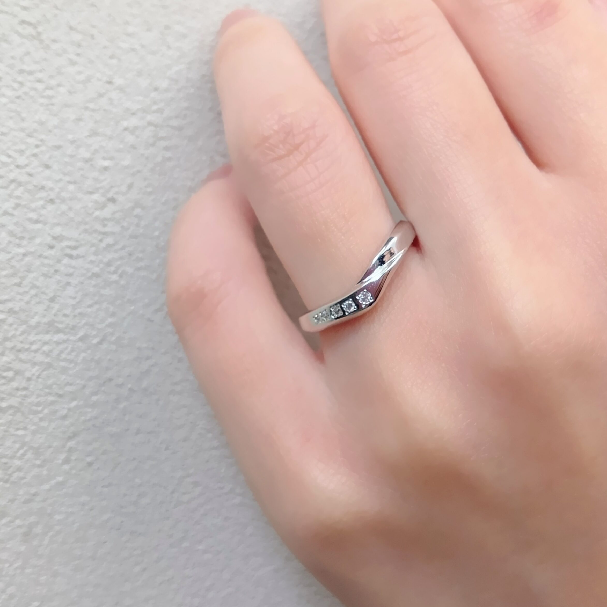 これから始まるおふたりの新生活。お互いを慈しみ、守り続ける、温かく強い気持ちをデザインに表現しました。センターで重なり合うラインは、まるでおふたりが手を取り合っているかのよう。ボリュームもあるので、フォーマルにもカジュアルにも活躍できるスタイリッシュなマリッジリング(結婚指輪)です。女性用は幅に合わせてグラデーションにダイヤモンドを配置、さりげなく手元を輝かせます。男性用はつや消し加工が施され、目立ち過ぎずさり気ない印象に。お洒落にお使い頂けるデザインです。