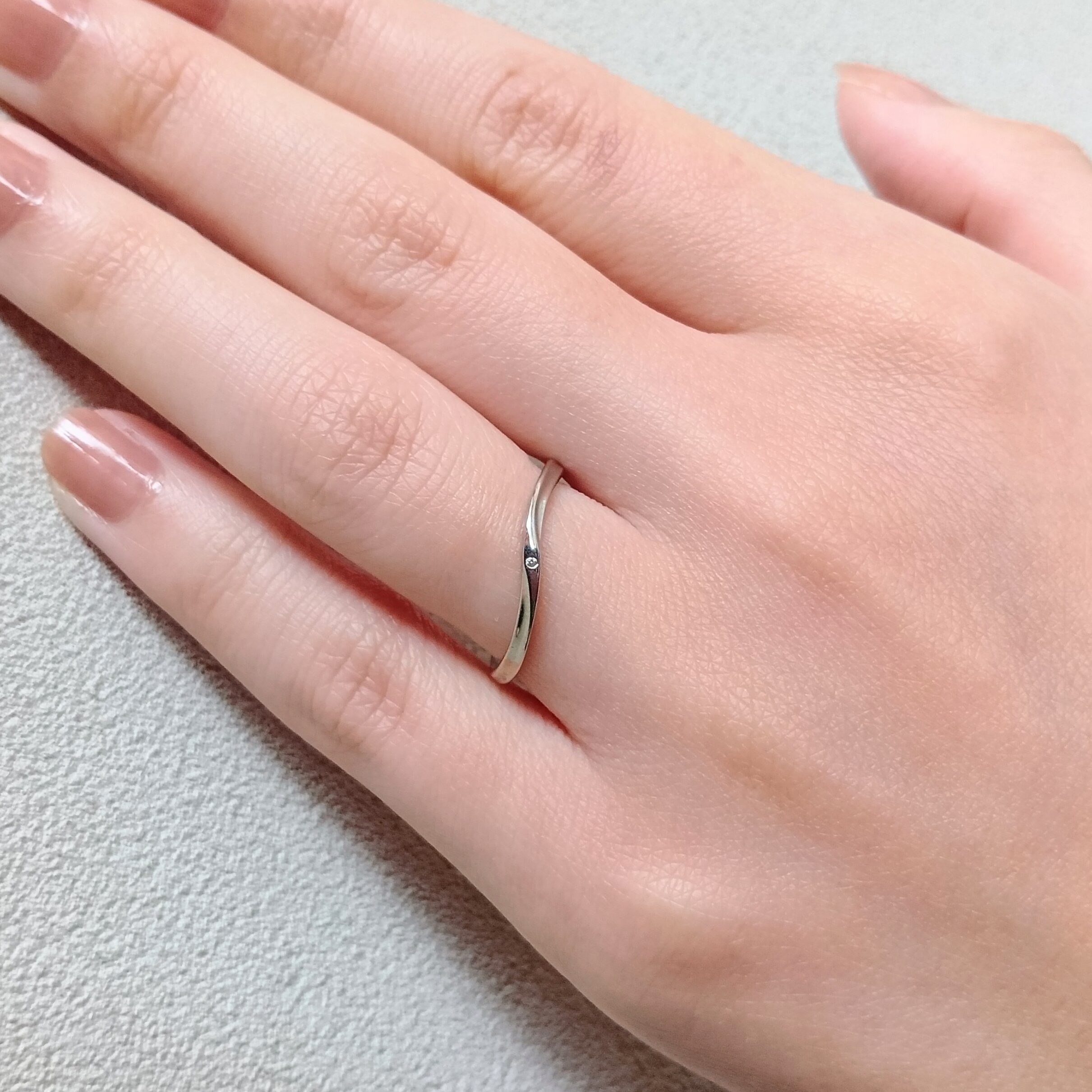 繊細ながら力強いウェーブが特徴のシンプルなマリッジリング(結婚指輪)。湖を優雅に泳ぐ白鳥、そして湖面に反射した光のようにおふたりの未来もいつまでも穏やかで、そして輝かしいものでありますように、と願いも込められている。