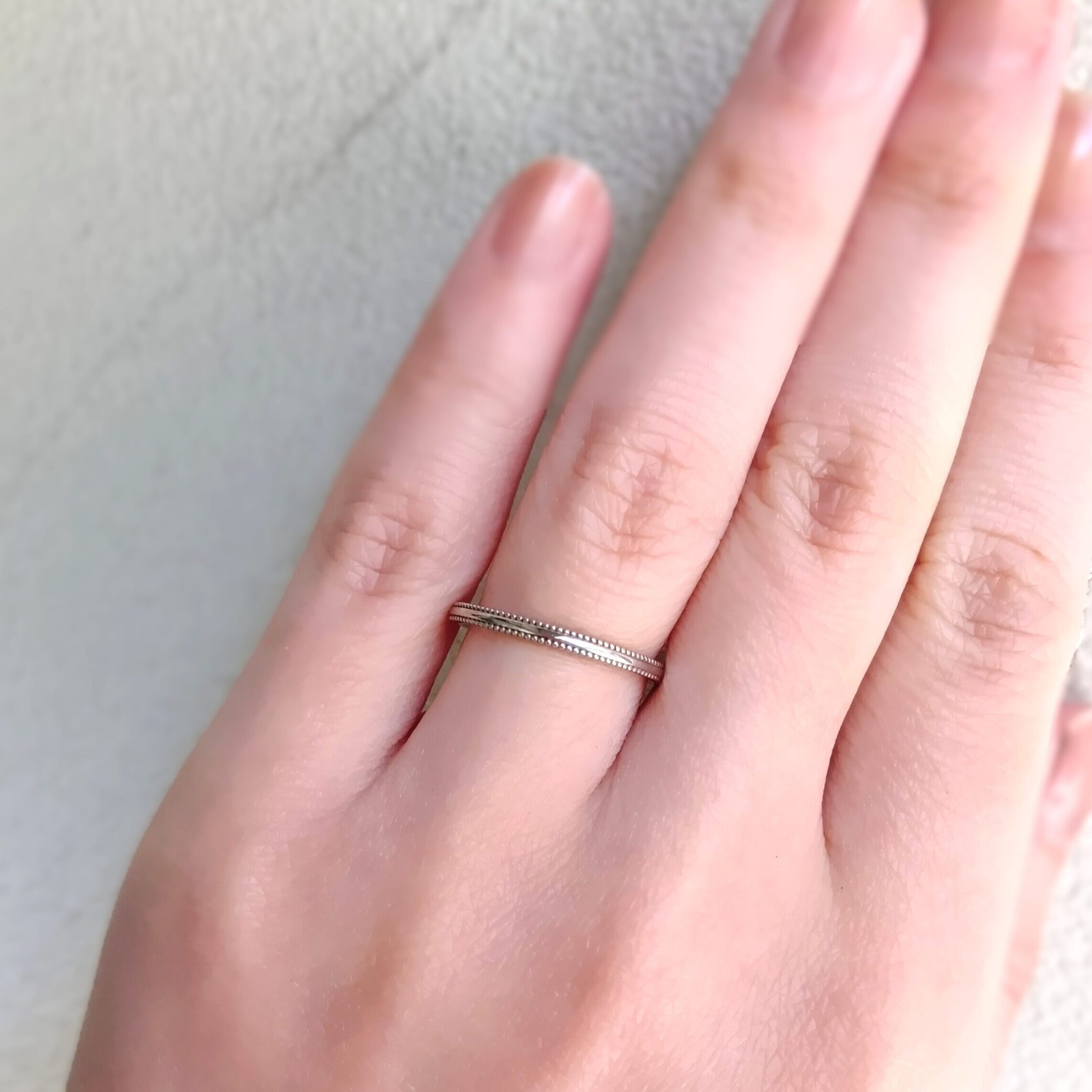 一周続く繊細なミル打ち加工はおふたりの永遠の絆を連想させる。ミル打ち以外にあえてデザインを入れず、均等に施されたまさに職人技の光る加工を存分に楽しめるマリッジリング(結婚指輪)。ミル打ちの繊細さを引き立てる細身のシルエットもまた抜群に格好良い。