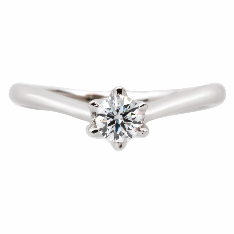 V字タイプのシンプルソリティアエンゲージリング(婚約指輪)。V字にすることでメインのダイヤモンドに目が行きやすく、更に指もほっそり見せてくれる相乗効果も!ダイヤモンドを留める台座部分も腰を低く、爪も小さく留めるので引っ掛かりも気にせず普段使いもしやすい点も嬉しいポイント。いつでもフレッシュな気持ちを思い出させてくれるような王道デザインで長く愛用出来ると人気。